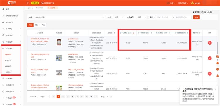 东南亚美妆市场销售增长迅速,在印尼市场里甚至有护肤产品一日的销量就达到了1w+,销售额达4亿Rp。