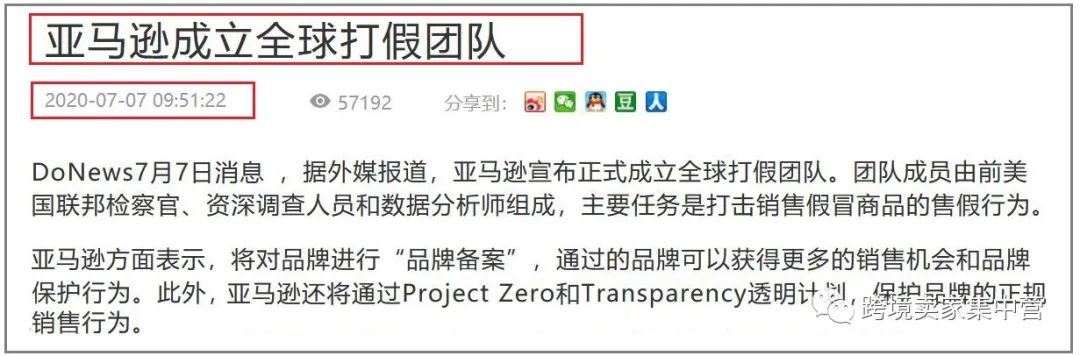 而且在2020年7月份,亚马逊还宣布成立了专门的全球打假团队。