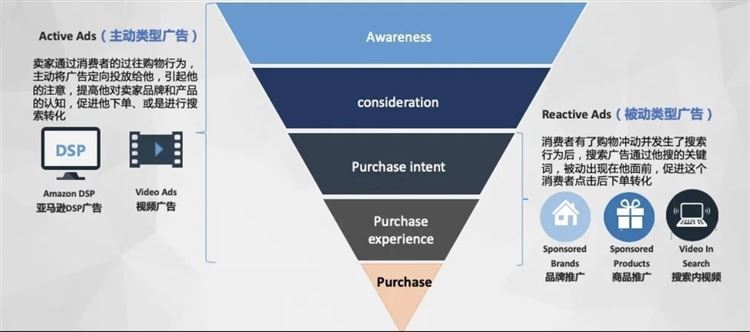 第二,我们从下图的用户漏斗模型也不难发现,SP广告主要覆盖漏斗中下层,目的是推动购买,即被动型广告;而DSP则是从认识品牌到考虑再到达成购买,从上至下贯穿整个广告渠道,是主动类型的广告;