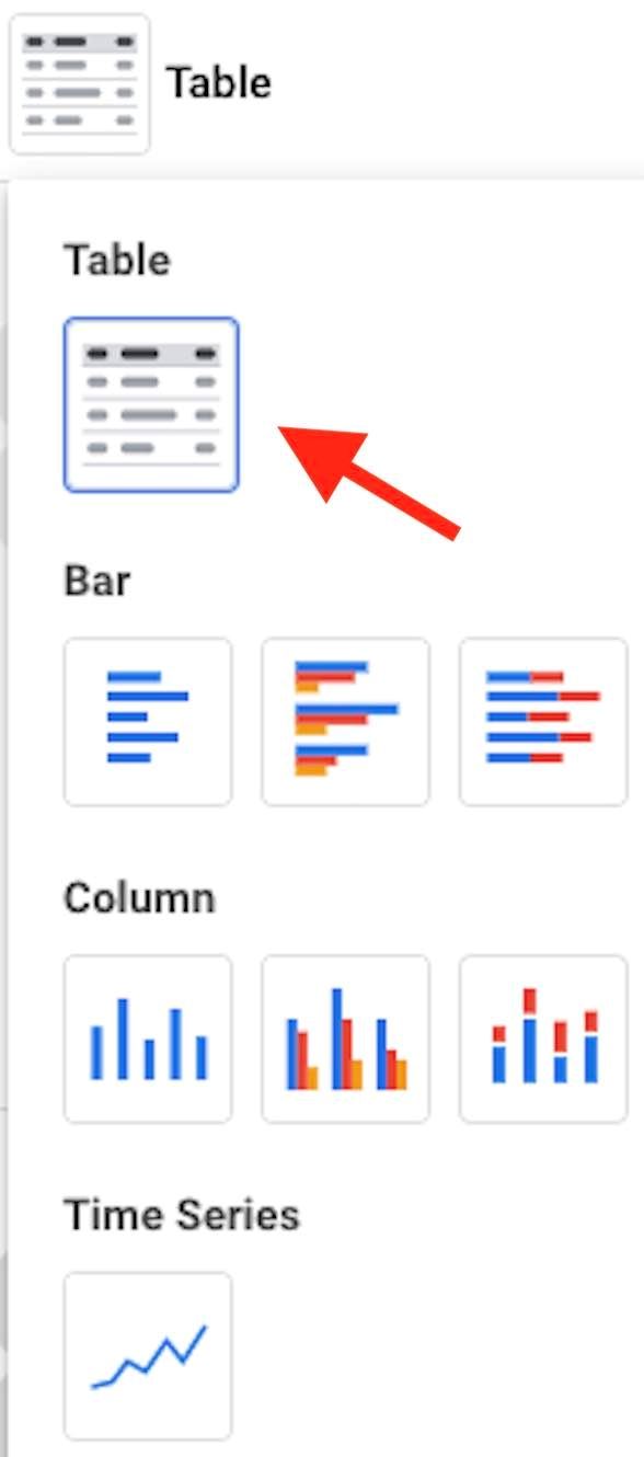 选择“Search”或“Shopping”,然后筛选广告(如广告A或名称中带有“ABC”的广告组)。点击“Table”选项,并选择“Time Series”,以查看某个时间段的数据,如每日、每周、每月、每季度或每年。
