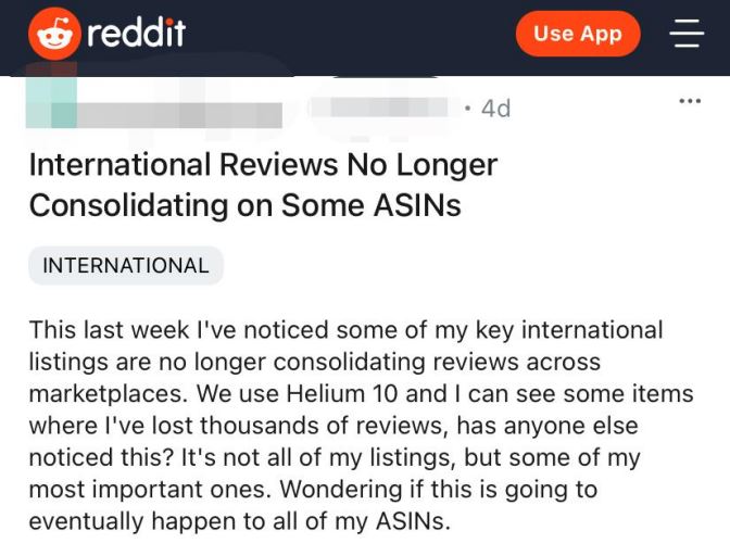 近日,一位国外亚马逊卖家在reddit上爆料:一些ASIN不能再合并国际评论了!一些产品丢失了数千条评论!