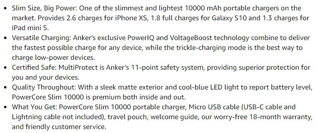 3. 首先以简短的功能摘要来开始描述的撰写,然后描述该功能的工作原理,例如:Certified Safe: MultiProtect is Anker’s 11-point safety system, providing superior protection for you and your devices;