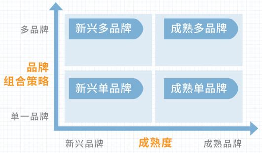 具体来看,品牌成熟度是依据品牌经营时间、品牌广告准备情况、品牌管理经验等情况对品牌进行分类。将品牌分为【新兴品牌】和【成熟品牌】。而品牌组合策略则是依据广告主拥有单品牌分销还是多品牌分销来划分,可分为【单品牌】和【多品牌】。