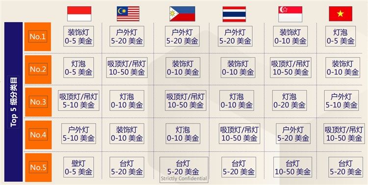 聊到这里,泰国市场不知道做什么产品的商家可以重点关注起来了!其中灯饰类目中重点推荐户外灯跟装饰灯,跟东安南生活习性有很多关系,东南亚特别像泰国大多房子以院落式结构为主,所以户外壁灯,太阳能灯购买占比大;其次大家都知道泰国人享受生活,大小节日都喜欢聚集一起,所以装饰灯也是必不可少的一部分。
